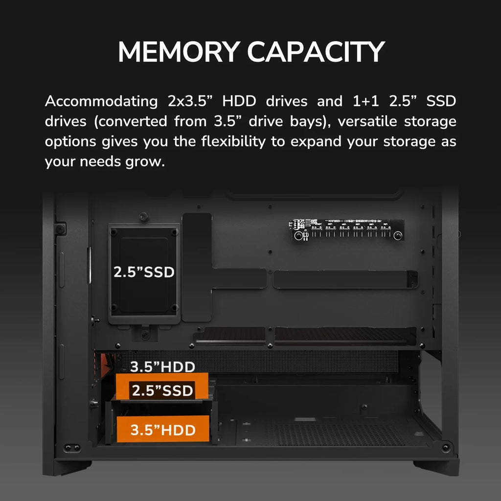 - Peut accueillir 2 disques durs 3,5" et 1+1 disques SSD 2,5" (convertis à partir de baies de disques 3,5" ).