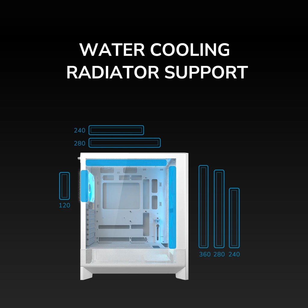 Livrée avec deux ventilateurs avant PWM ARGB de 180 mm et un ventilateur arrière PWM ARGB de 120 mm, la Airface 180 offre un refroidissement extrême dès sa sortie de l'emballage. Optimisez votre système de refroidissement avec jusqu'à huit ventilateurs pour des performances optimales même lors des sessions de jeu les plus intenses.