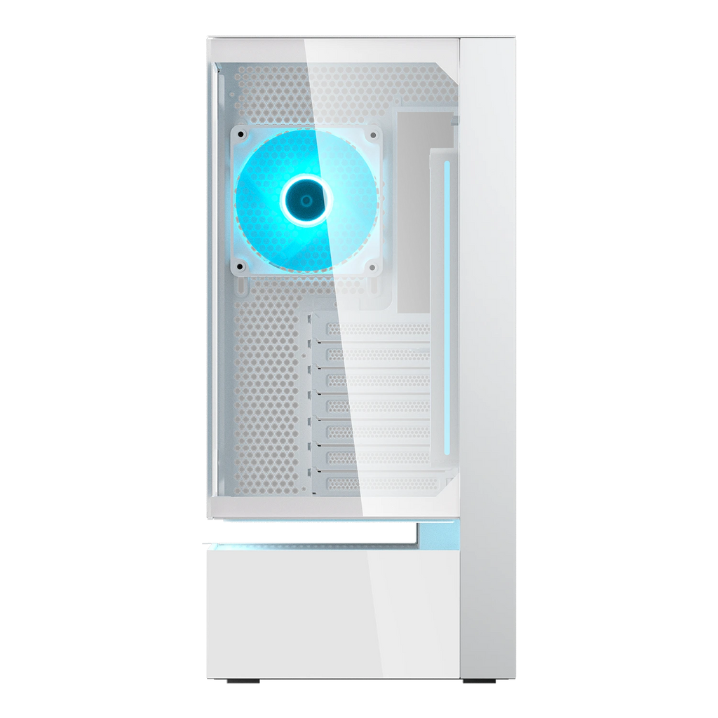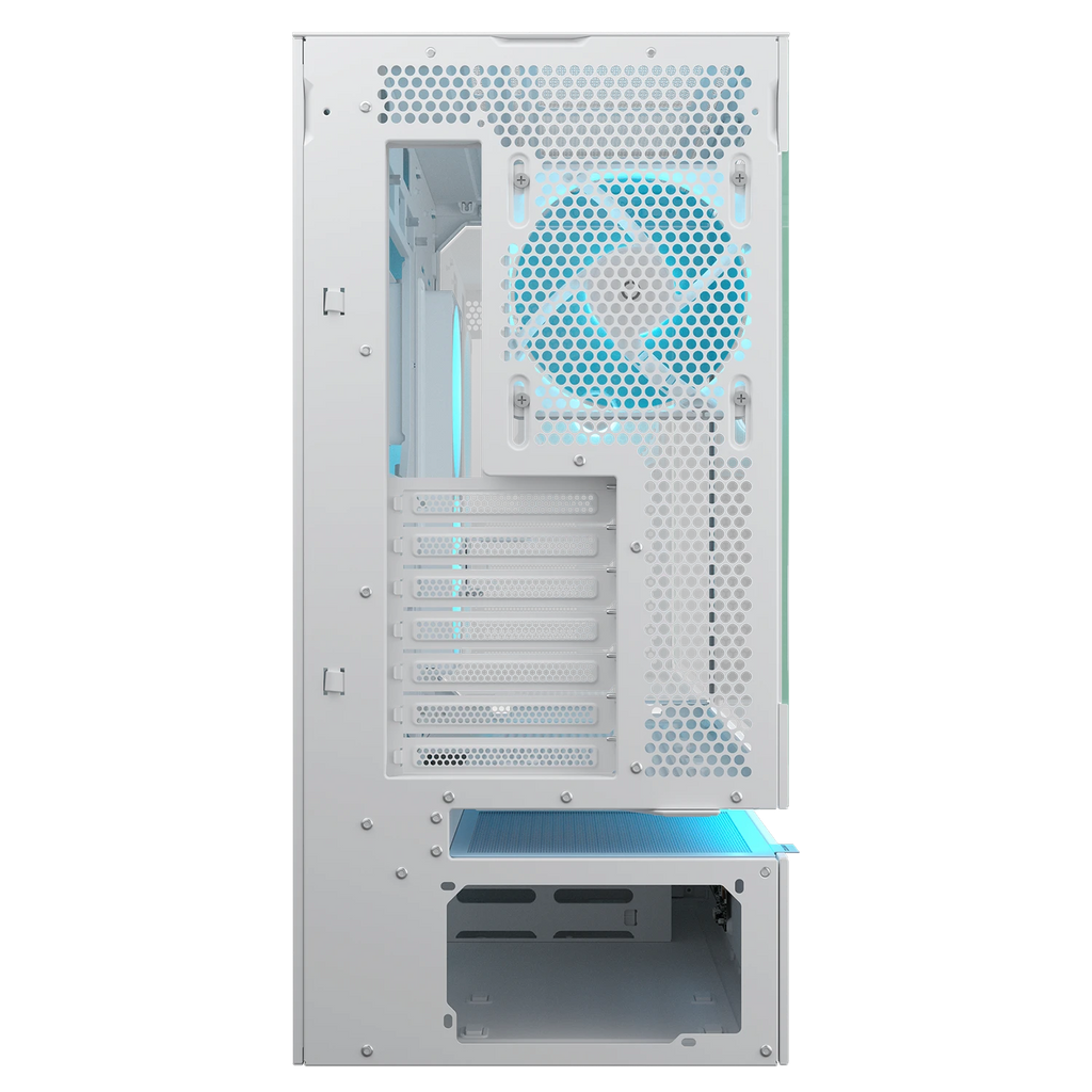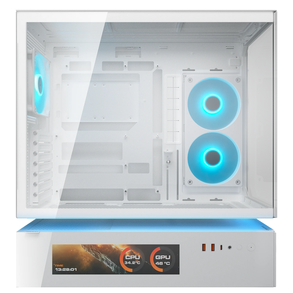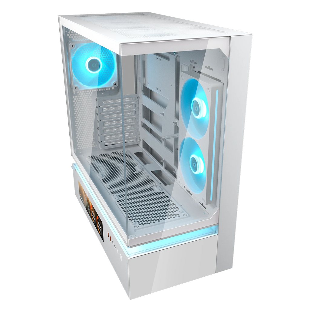 La conception conventionnelle intègre à la fois l'alimentation – une source majeure de chaleur – et les composants critiques dans le même espace, limitant l'accès au flux d'air aux panneaux supérieur, avant et arrière. La ventilation flottante centrale divise le compartiment de l'alimentation et la chambre principale avec un creux structurel qui permet à l'air de circuler avec plus de liberté et de détermination. Cette séparation architecturale flottante confère également à la série CFV235 son identité visuelle unique et progressive.