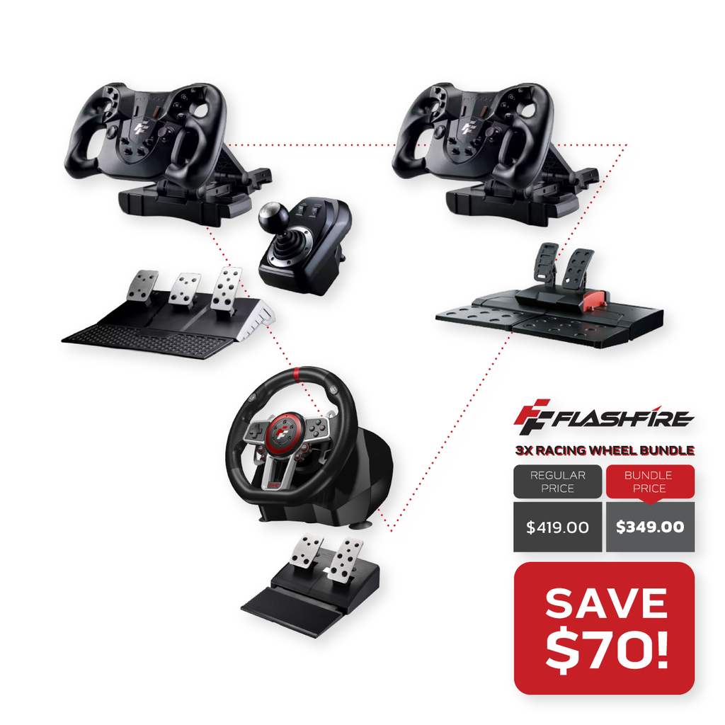 Experience the adrenaline of racing and great immersion with the Monza Racing Wheel. This racing set includes a feedback vibration steering wheel, Hall sensor mechanism, and a pedal floorboard. This version does not include a clutch pedal or H-shifter.
