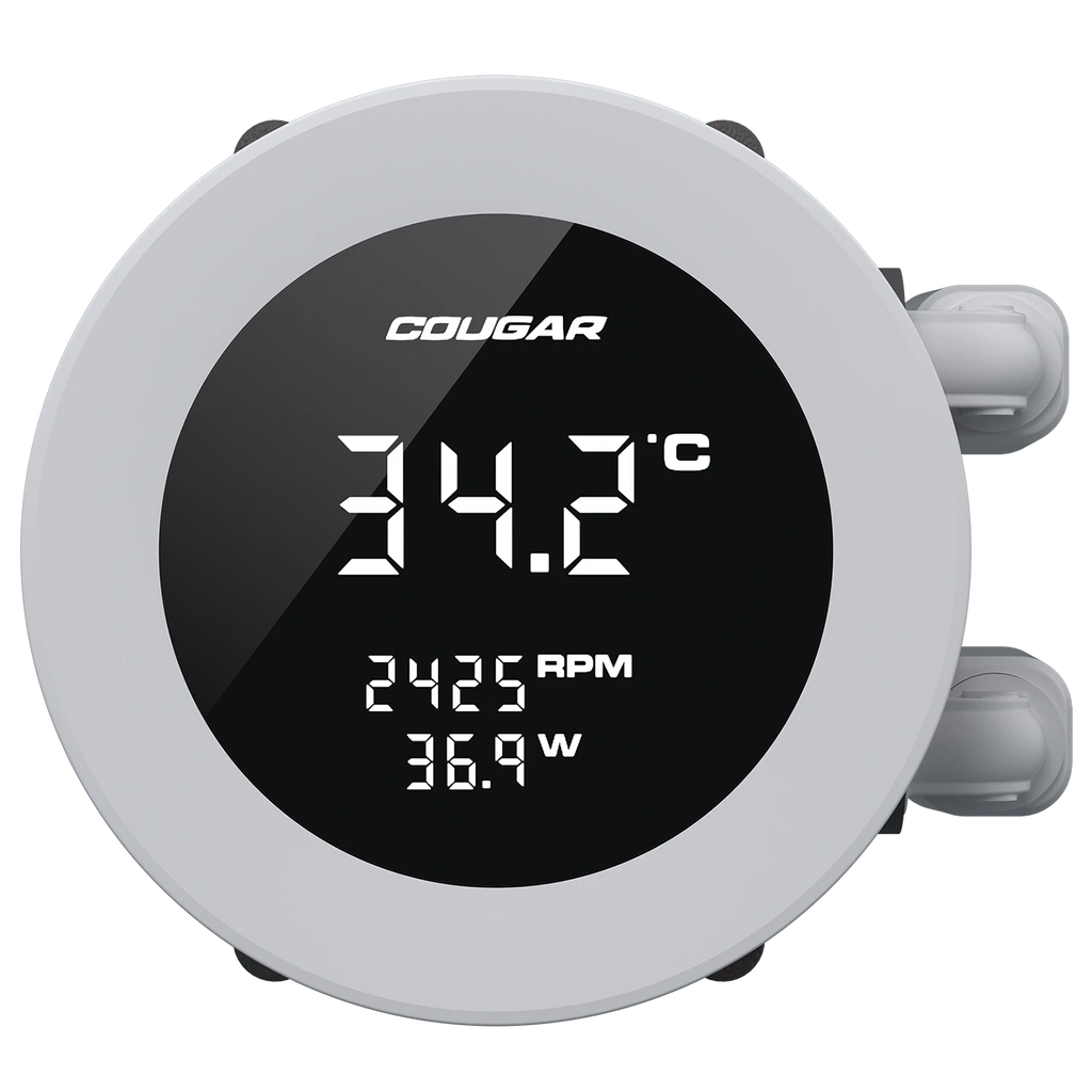 A 1.9-inch digital display delivers fixed, real-time readouts of CPU temperature, fan RPM, and SPU TDP Wattage, keeping critical performance metrics in view.