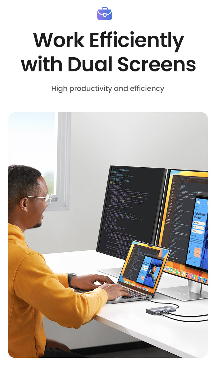 Prend en charge une entrée de charge USB-C jusqu'à 100 W pour alimenter votre appareil hôte pendant son utilisation.