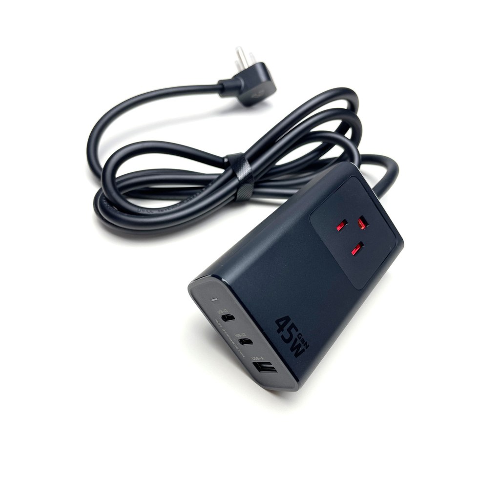 With 45W of USB power, it can handle your phone, tablet, or even a laptop - no bulky power brick needed. The built-in AC outlet adds extra flexibility for powering larger devices like a monitor. Perfect for your home office, couch-side setup, or travel bag.