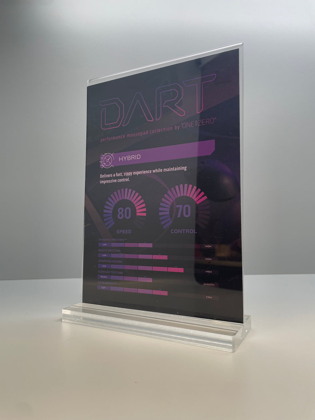 Merchandising support for ONEofZERO's line of Performance gaming Mouse Pads - DART