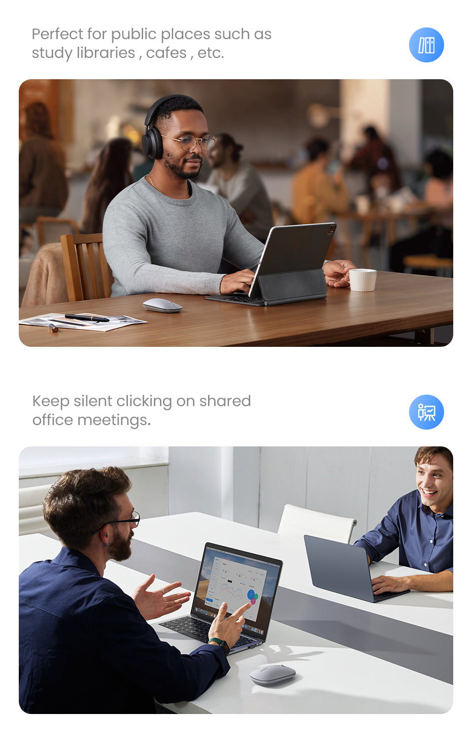 A lightweight and compact wireless mouse suitable for general use across various devices and operating systems.